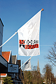 Alle GlansPolyester vlaggen worden standaard rondom dubbelnaalds gezoomd en afgewerkt met broekingsband en bindlijn (lusje bovenin).